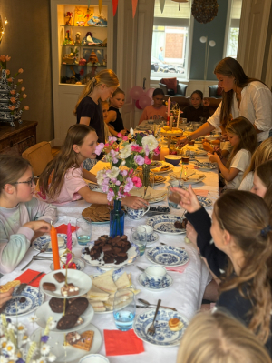 In duo's gingen de meiden van tevoren zelf boodschappen doen en bakken om daarna gezamenlijk alles op te eten. Ook de jeugdcoaches Jip en Ike hadden gebakken en kwamen een kopje thee drinken.