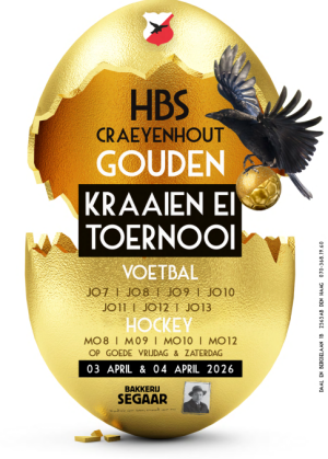 Op Goede Vrijdag 3 april en zaterdag 4 april organiseert HBS-Craeyenhout weer het jaarlijkse Gouden Kraaien Ei Toernooi! Dit gratis toernooi is bedoeld voor: MO12 – vrijdag 3 april MO8, MO9 en MO10 – zaterdag 4 april